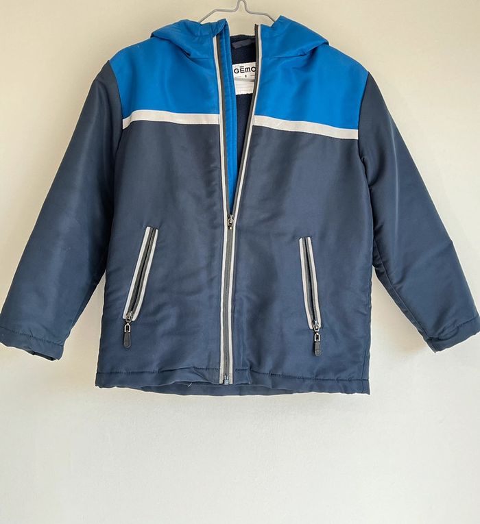 Manteau déjà porté par mon fils. Marque : Gémo Taille : 8 ans Matière : polyester Couleur principale : bleue. Le bout de la fermeture éclaire est cassé mais celle ci fonctionne toujours. (Voir photo). #manteau #manteauenfant #manteauenfant8ans #manteaugarcon #manteaugarcon8ans #manteaubleu #manteaubleugarcon #vetementgarçon