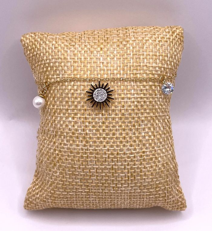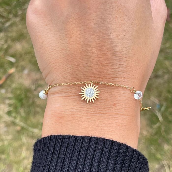 Bracelet avec breloques (soleil, strass, lune, étoile, perle) en acier inoxydable (chirurgical) doré - photo numéro 1
