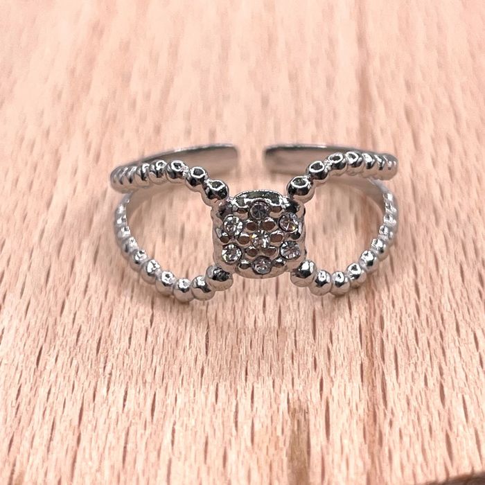 Bague réglable avec ses strass en acier inoxydable argenté et hypoallergénique - photo numéro 1