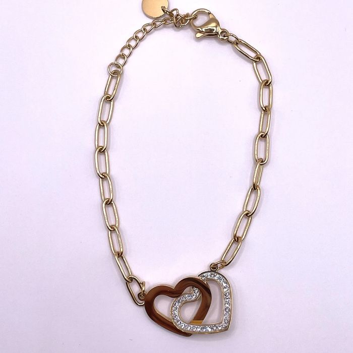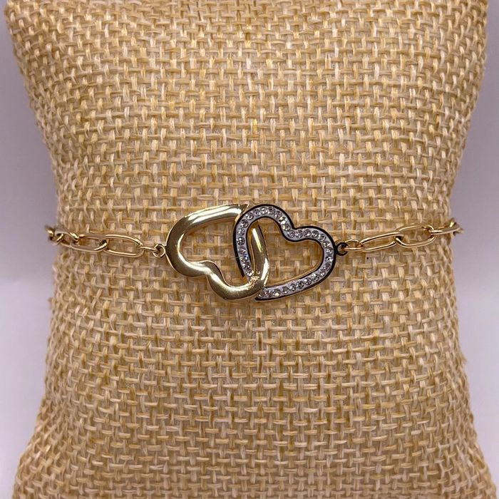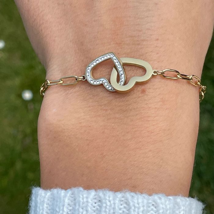 Bracelet Amour, cœurs scintillants de strass, entrelacés en acier inoxydable doré - photo numéro 1