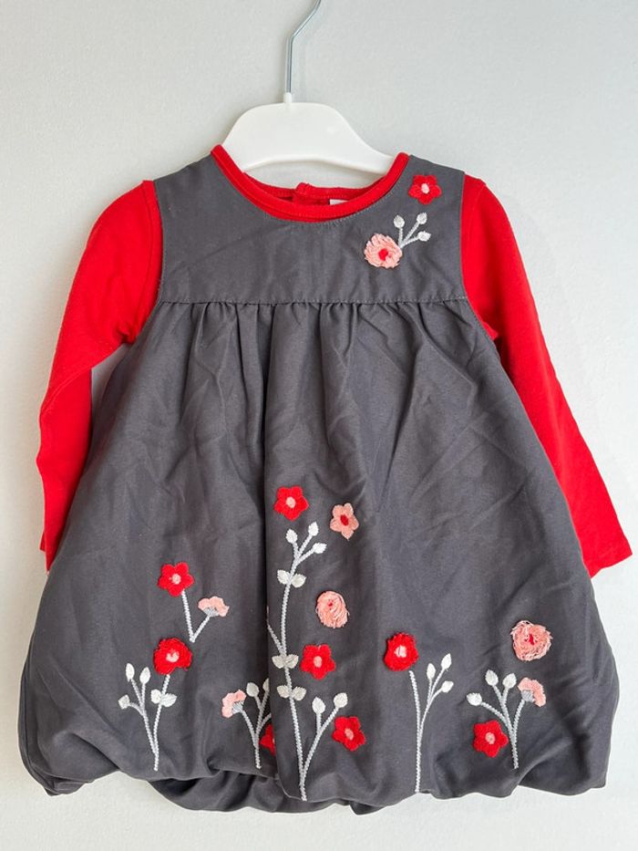 Ensemble robe gris et rouge 12 mois - photo numéro 2