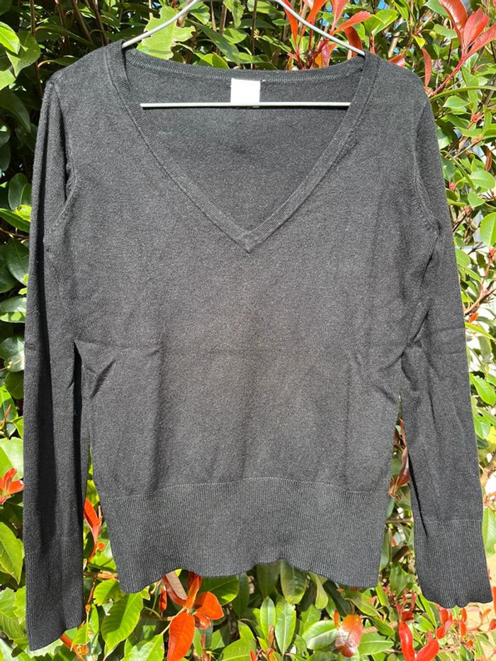 Pull noir col V Camaïeu en taille S - photo numéro 1