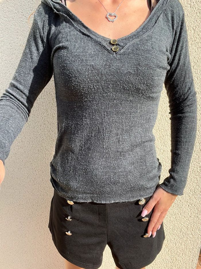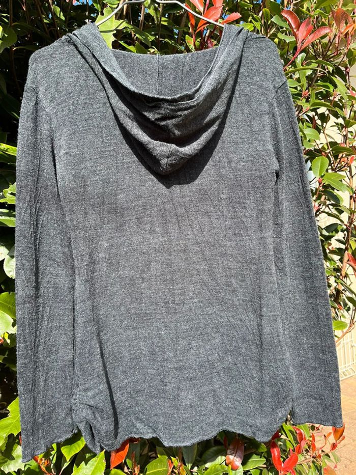 Pull fin à capuche manche longues gris foncé taille S pour femme