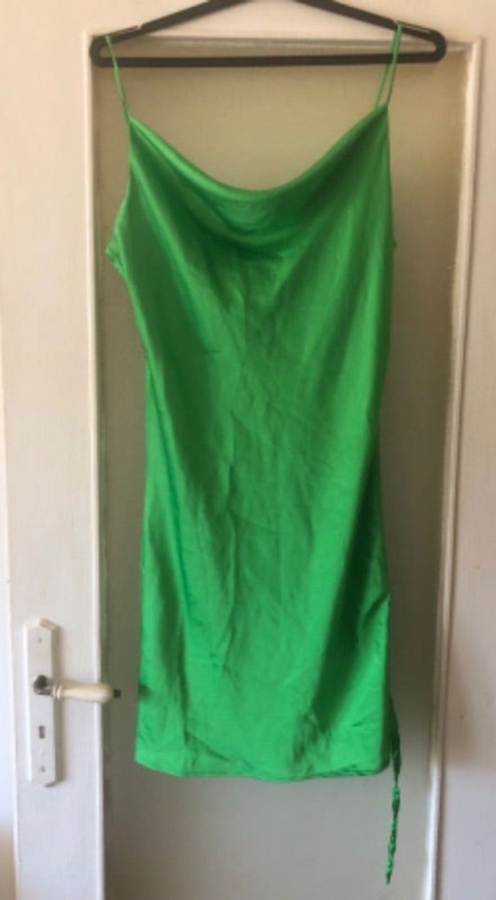 Robe satinée de la marque Amisu Bretelles réglables Lien de réglage sur le bas du côté gauche pour froncer celui-ci 100% polyester Longueur 105 Aisselles à aisselles 49 cm
