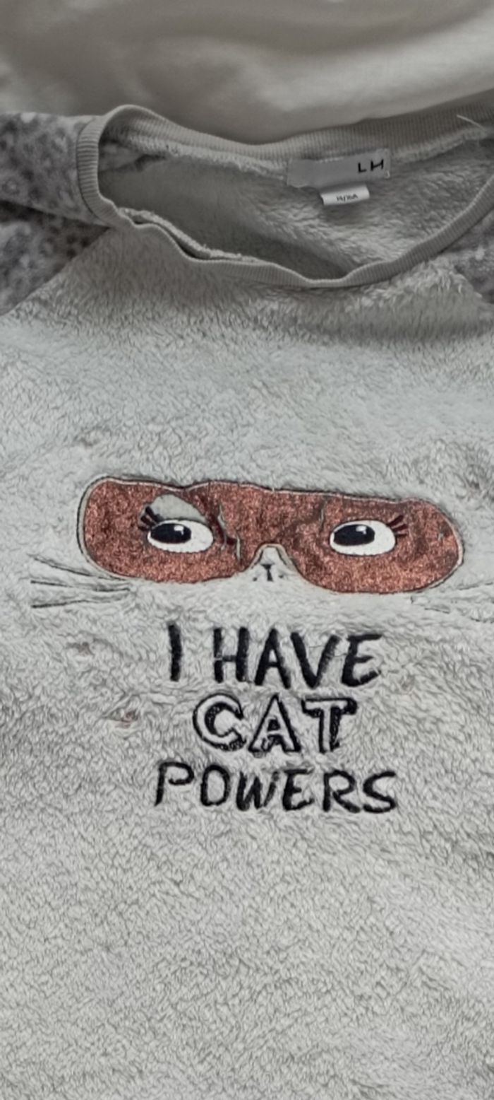 Pijama hiver 2 pièces blanc/gris 12 ans la halle 4€ - photo numéro 2