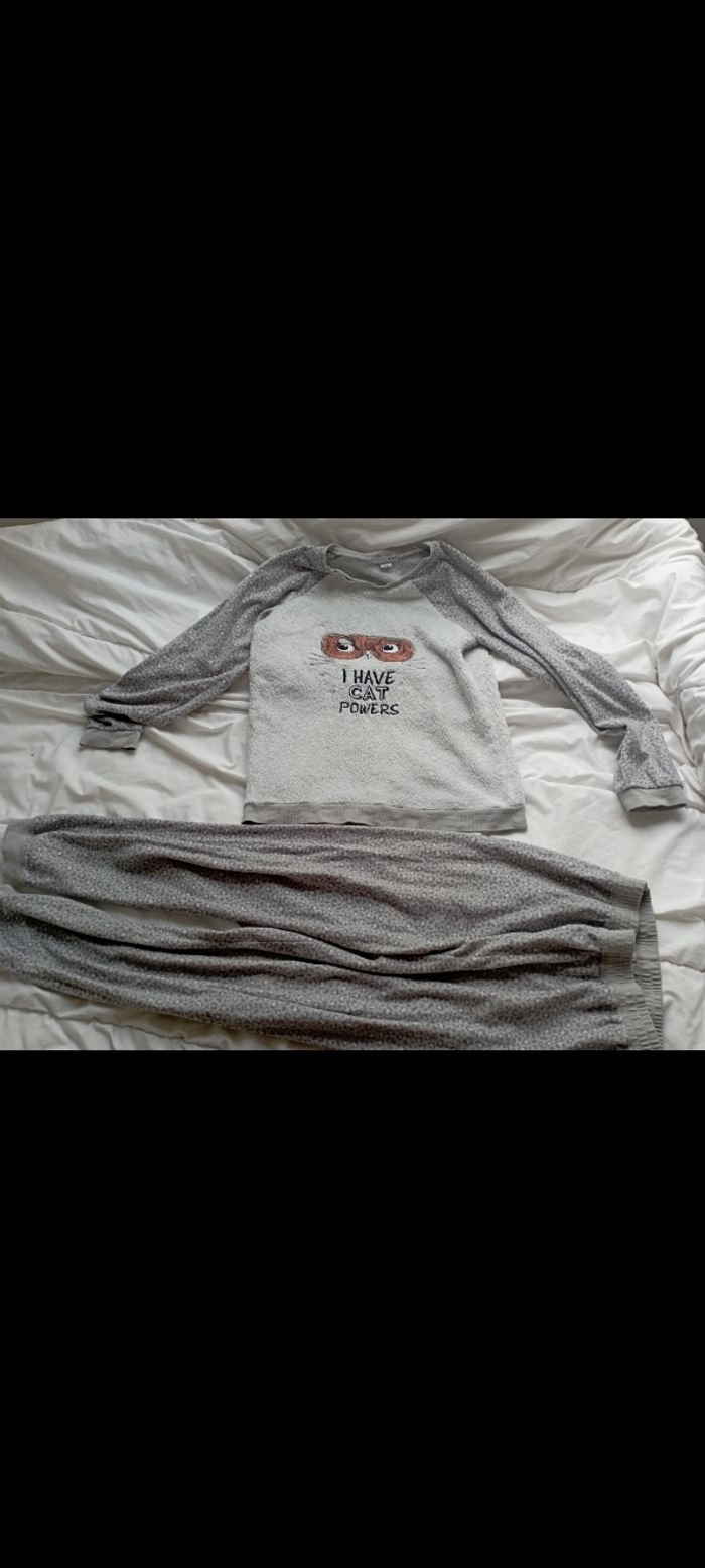 Pijama hiver 2 pièces blanc/gris 12 ans la halle 4€ - photo numéro 1