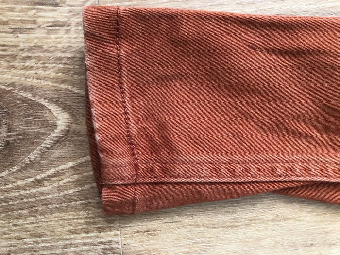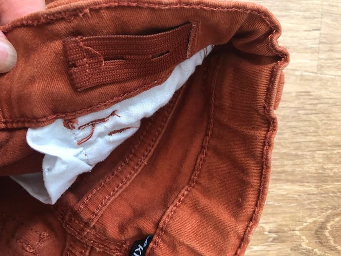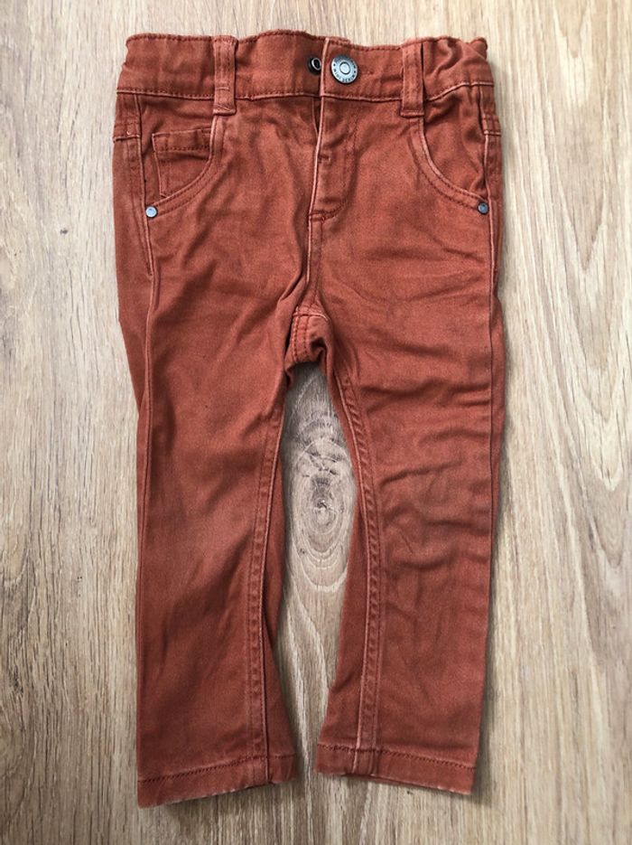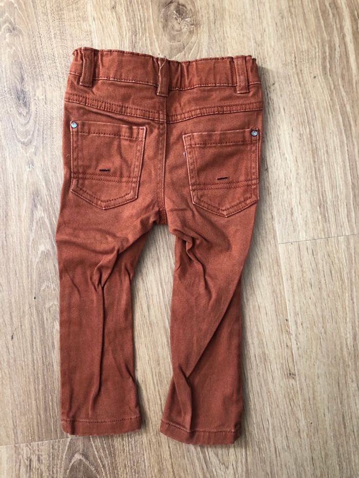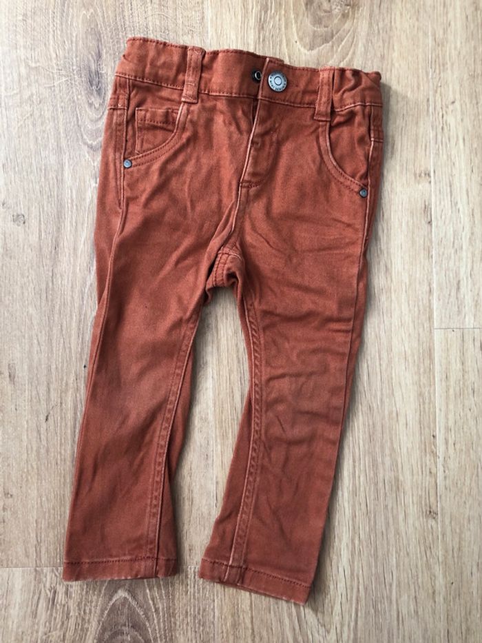 pantalon slim couleur orange brique un peu usé en bas des 2 jambes (cf photo) taille ajustable 18 mois kiabi #bebevelivelo #18moisvelivelo #kiabivelivelo