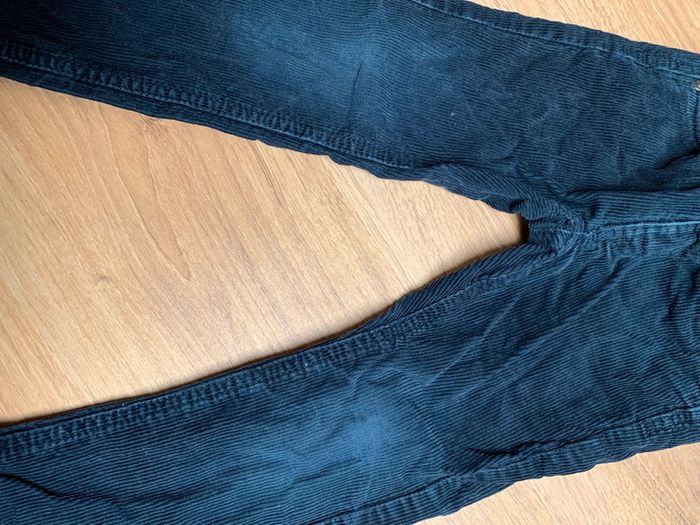 pantalon marine en velours côtelé un peu d’usure liée aux lavages notamment sur les genoux (cf photo) 3 ans kiabi #3ansvelivelo #kiabivelivelo