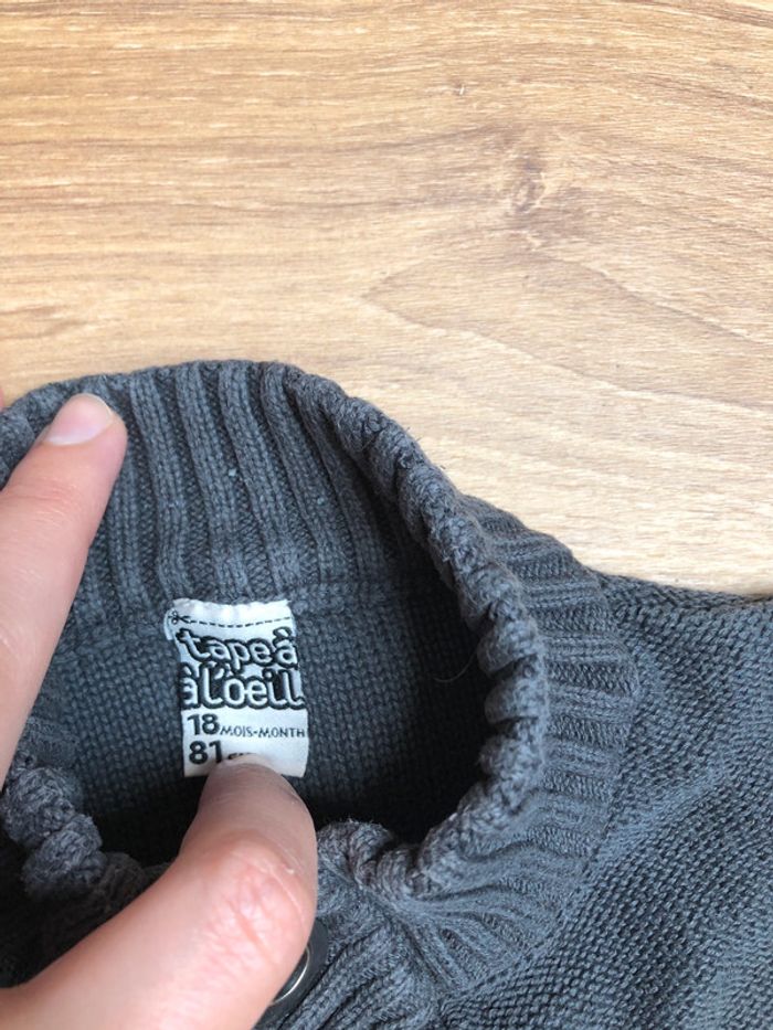 gilet gris avec pression usure liée aux lavages 18 mois tape à l’œil #bebevelivelo #18moisvelivelo #taovelivelo