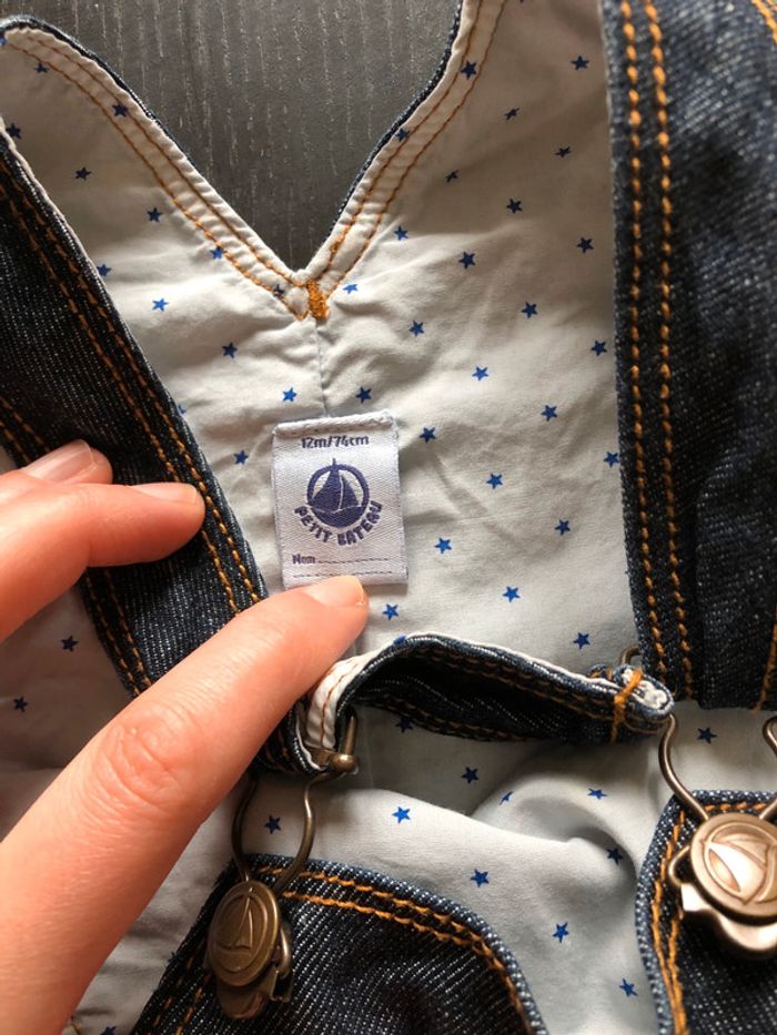 salopette en jean bleu 12 mois petit bateau #bebevelivelo #12moisvelivelo #petitbateauvelivelo