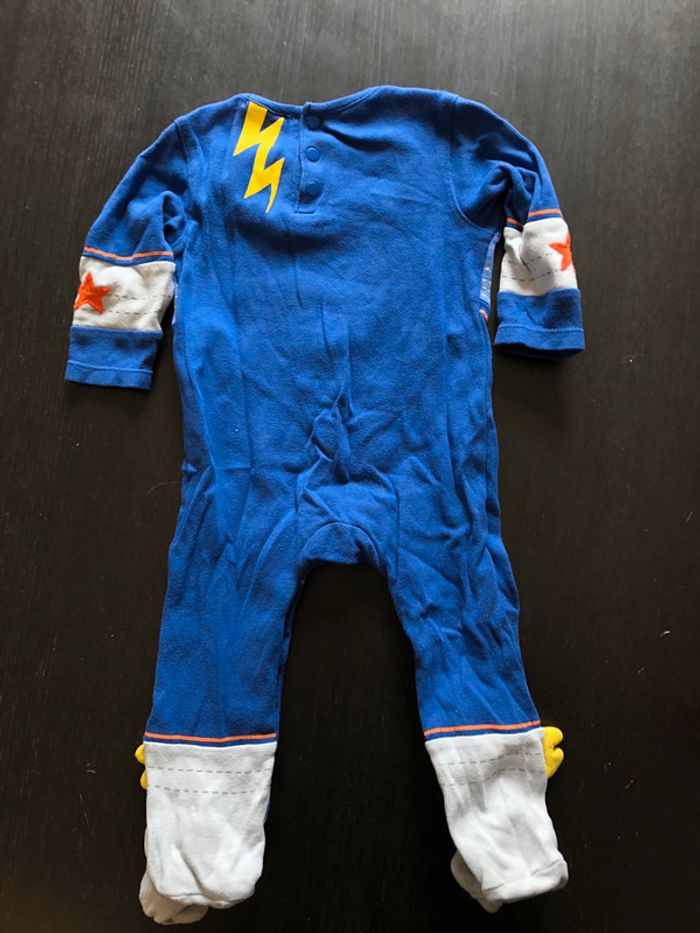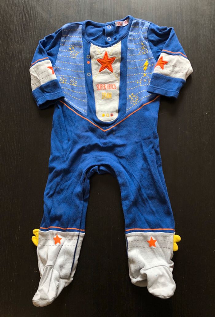 pyjama super héro bleu, gris, jaune et orange 12 mois du pareil au même #bebevelivelo #12moisvelivelo #dpamvelivelo
