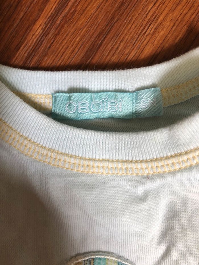tee shirt blanc et jaune 6 mois obaibi #bebevelivelo #6moisvelivelo #okaidivelivelo