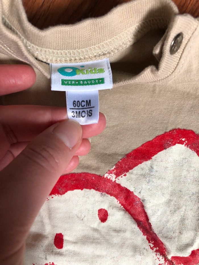 tee shirt beige avec éléphant rouge et blanc 3 mois #bebevelivelo #3moisvelivelo