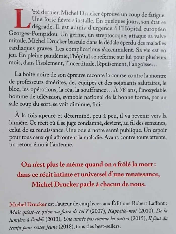 📃 𝐃𝐞́𝐭𝐚𝐢𝐥𝐬 : livre témoignage écrit par Michel Drucker, aux éditions Robert Laffont