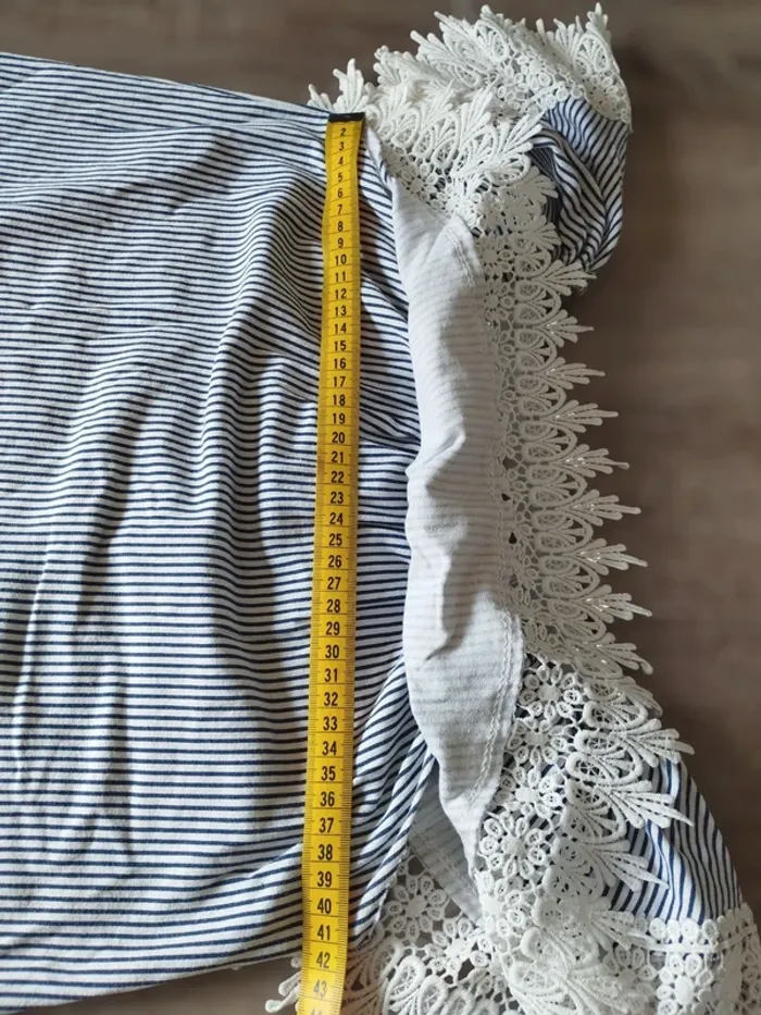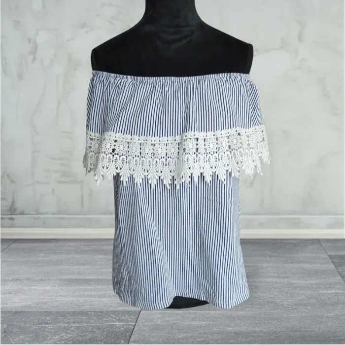 Joli haut femme TU (38) voir mensurations en photo 😊 Épaules dénudées Couleur marine et blanc #femmeT38_catrinacalavera