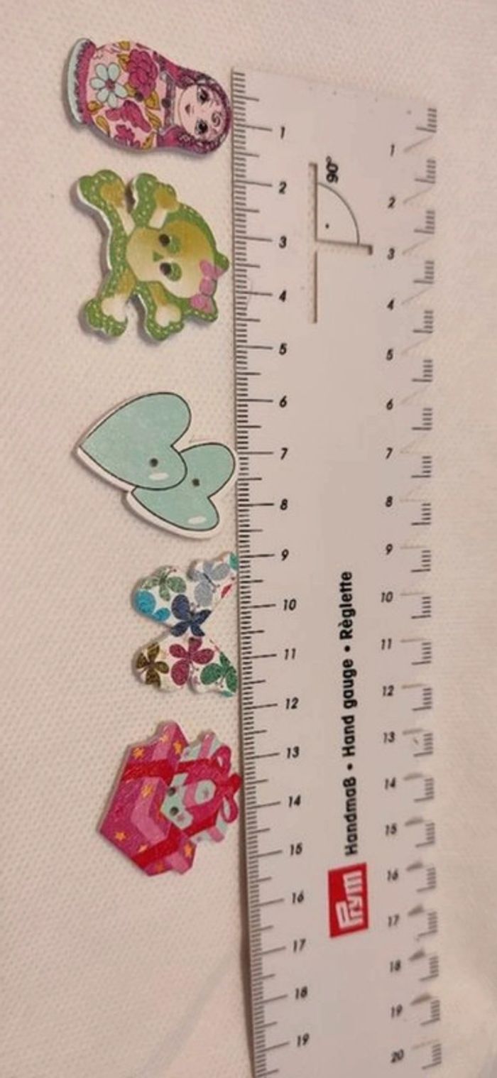 Boutons en bois 2 trous pour activité manuelle. J'ai mis une règle de mesure pour plus de réalisme quand à la taille de ceux ci #décoration #sac