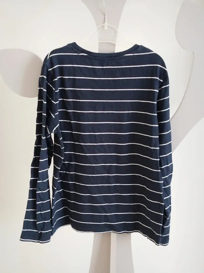 Tee-shirt manches longues marinière bleu marine et blanc Kiabi taille 12 ans - photo numéro 1