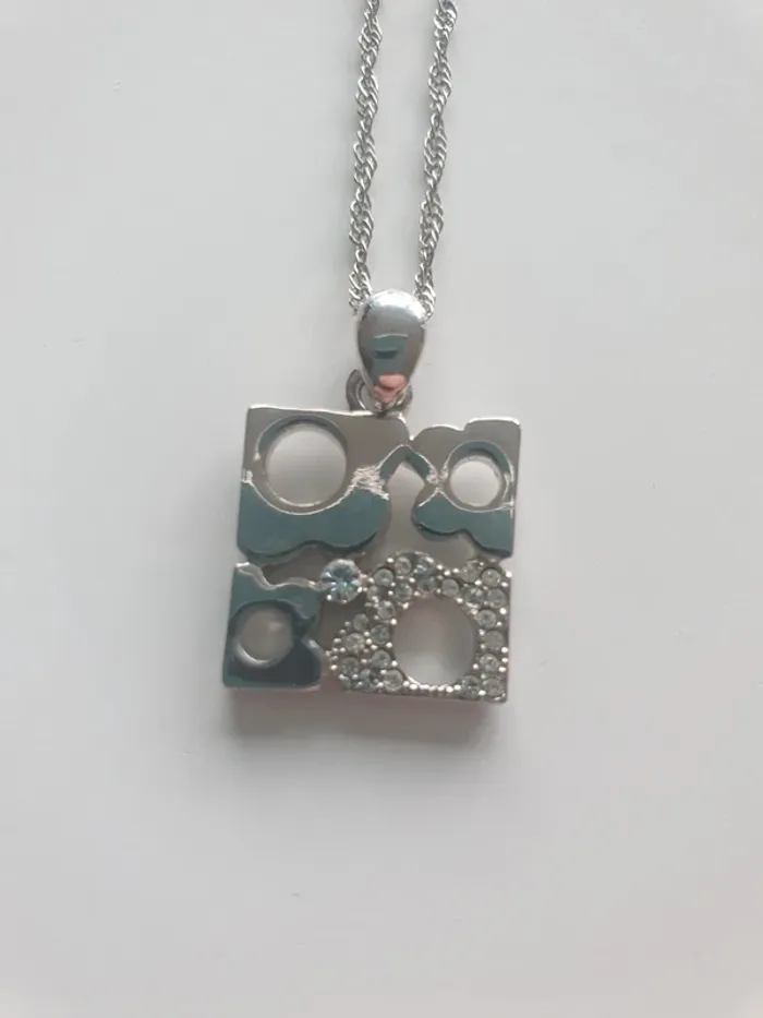 Collier fantaisie carré, avec brillants Matière métal Chaîne réglable, avec fermeture mousqueton Très bon état #sansynonabijoux