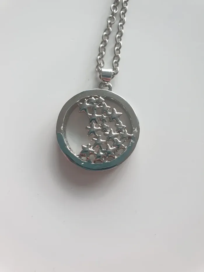Collier fantaisie Cercle avec étoiles Plutôt épais avec écriture à l'extérieur Chaîne réglable avec fermeture mousqueton Très bon état #sansynonabijoux