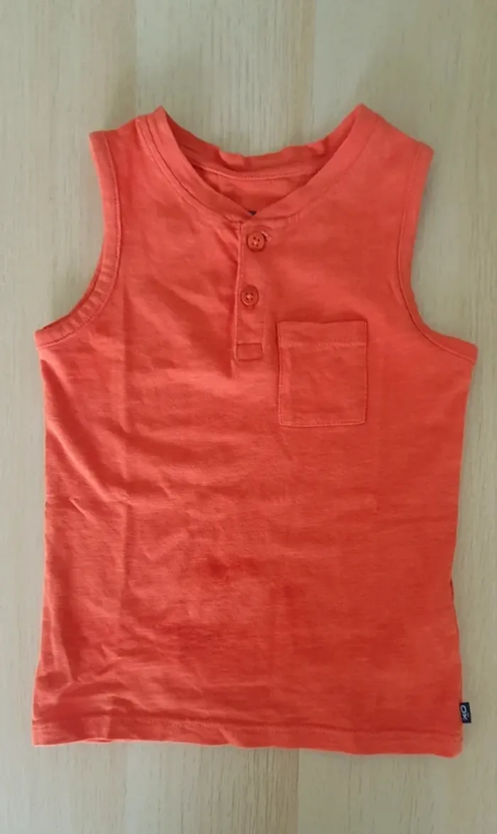 Débardeur Okaïdi Taille 3 ans Coloris orange (plus clair et lumineux que sur la photo) Petite poche sur le devant Très bon état #sansynonavêtementsgarçon3ans