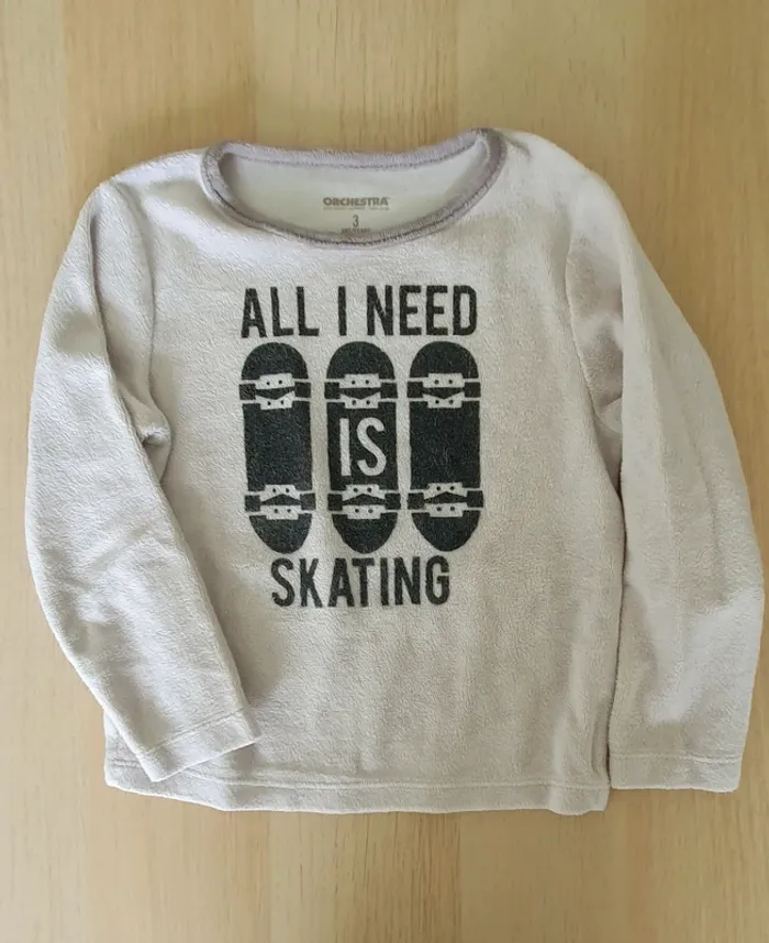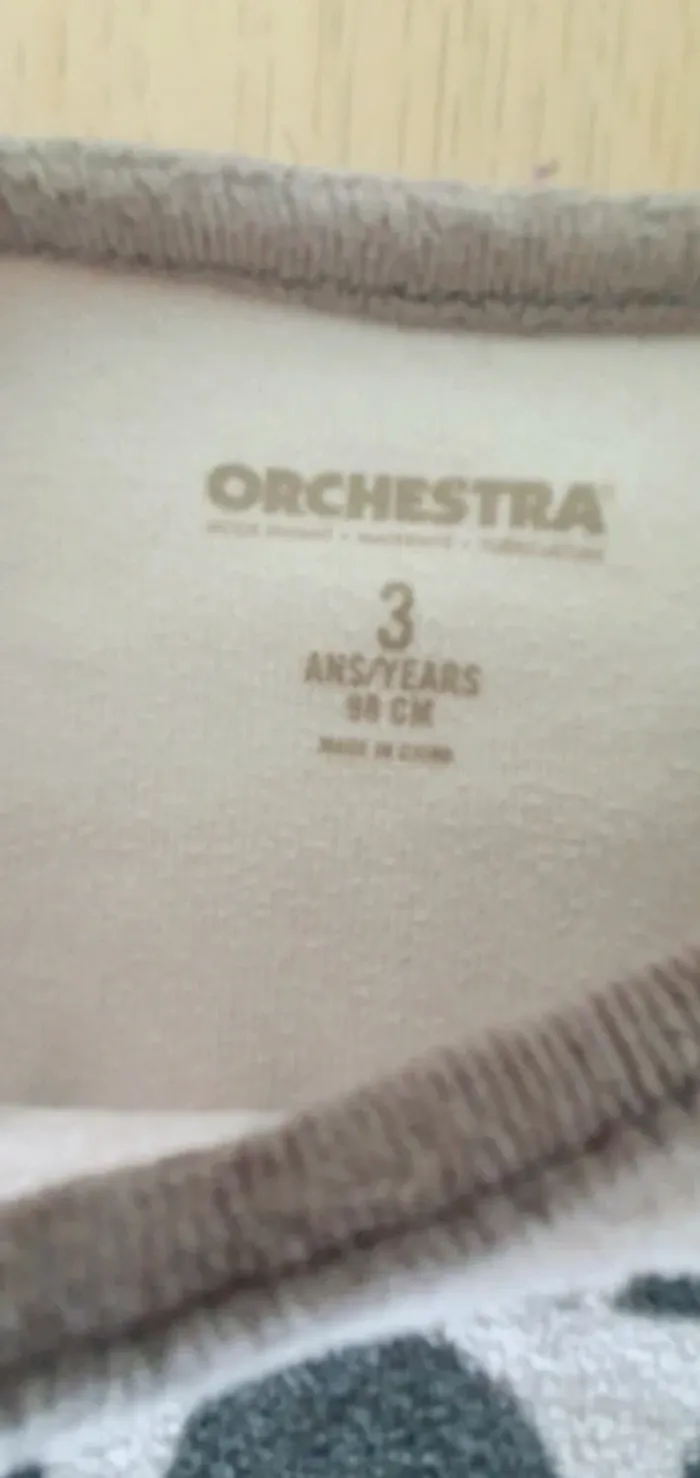 Pyjama en velours Orchestra Taille 3 ans Coloris gris pour le bas et gris clair pour le haut, avec motif Très bon état #sansynonavêtementsgarçon3ans