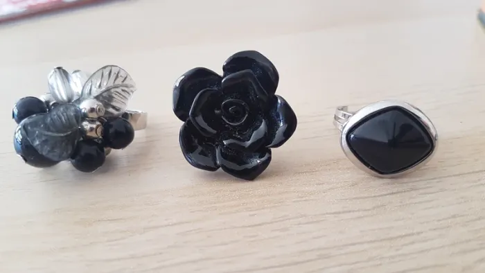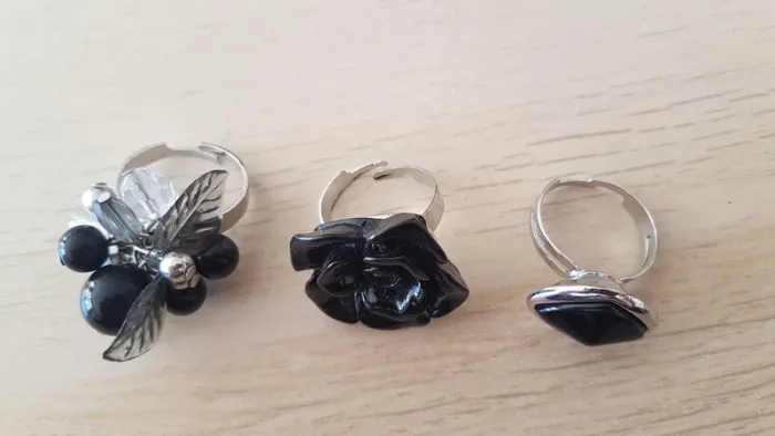 Lot de 3 bagues noires fantaisie Anneau reglable pour tous les doigts Tres bon état, très peu portées #sansynonabijoux