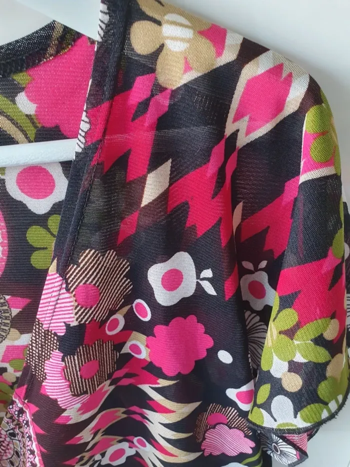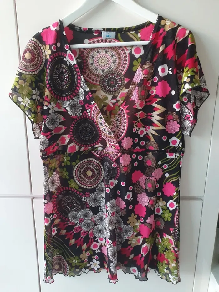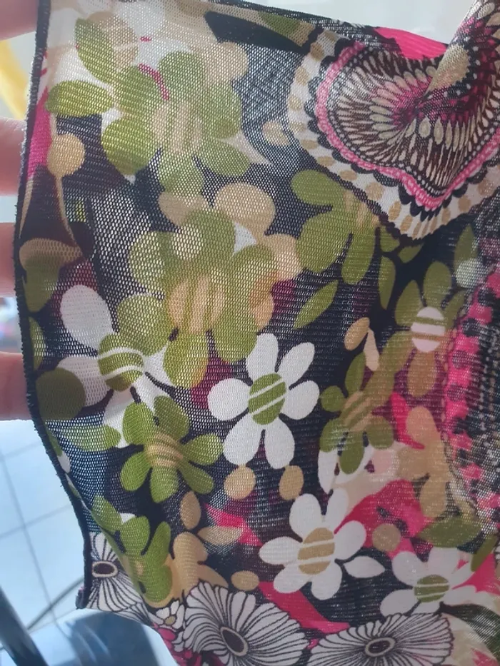 Tunique fleurie en voile Ms Mode Taille L Coloris noir, rose et vert A porter seul ou avec un débardeur dessous car légèrement transparent Très bon état #sansynonavêtementsfemme