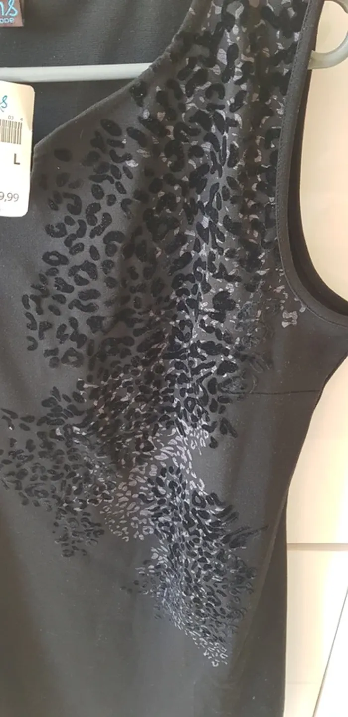 Jolie robe automne/hiver Ms Mode Taille L Matière un peu épaisse Coloris noir avec motifs noirs en velours et gris Neuve, avec étiquette #sansynonavêtementsfemme