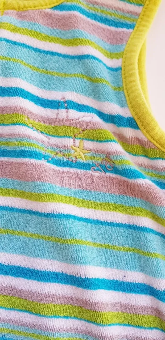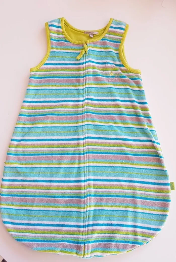 Jolie gigoteuse/turbulette d'été Prémaman Taille 1 (65 cm) Rayée vert/bleu clair/turquoise Ouverture intégrale sur le devant Matière coton/éponge Très bon état, très peu utilisée