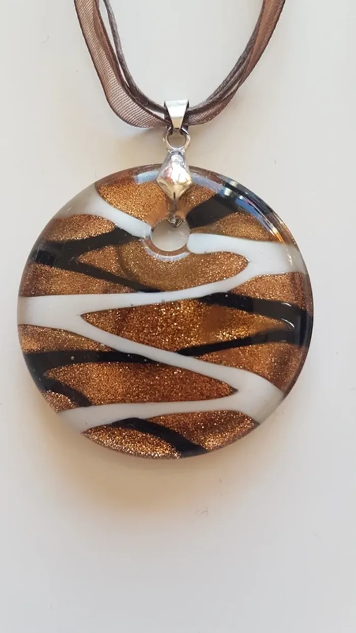 Lot de 2 très jolis colliers Matière : verre Tons marrons Cordon + cordon organza Fermeture par mousqueton Très peu portés, très bon état #sansynonabijoux