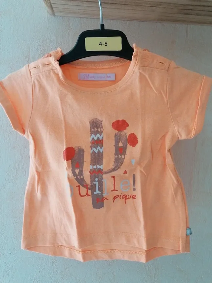 Joli t-shirt Gémo 12 mois en très bon état #louna12mois #12mois #été #orange #abricot #cactus #ouille #sapique #gémo