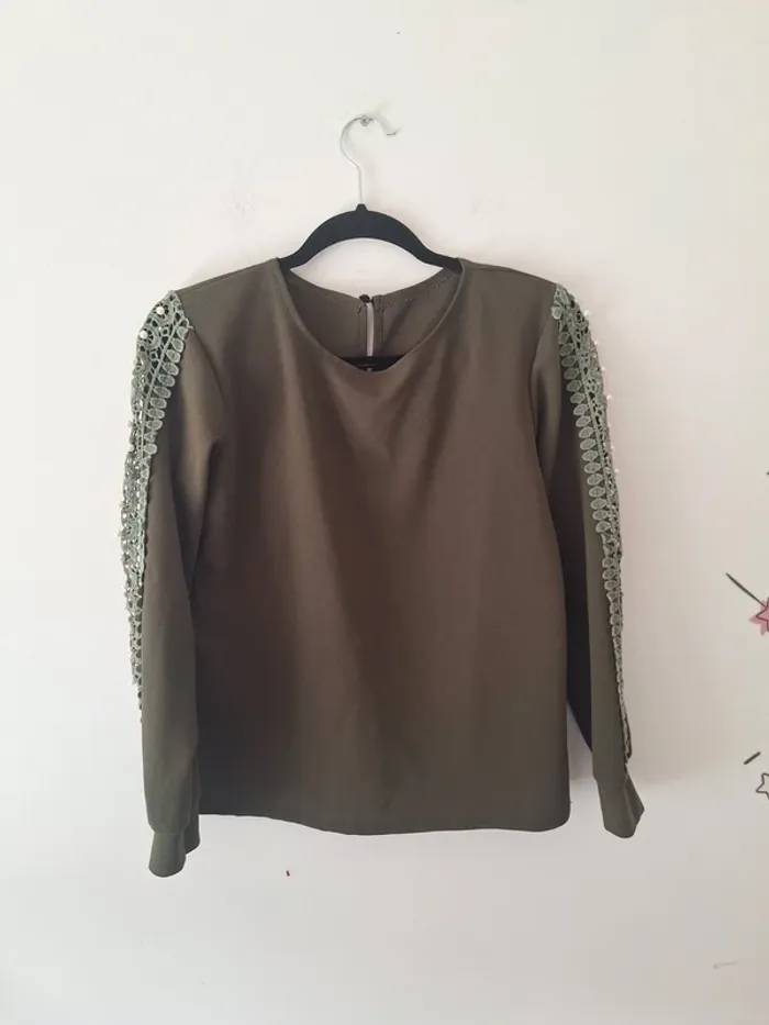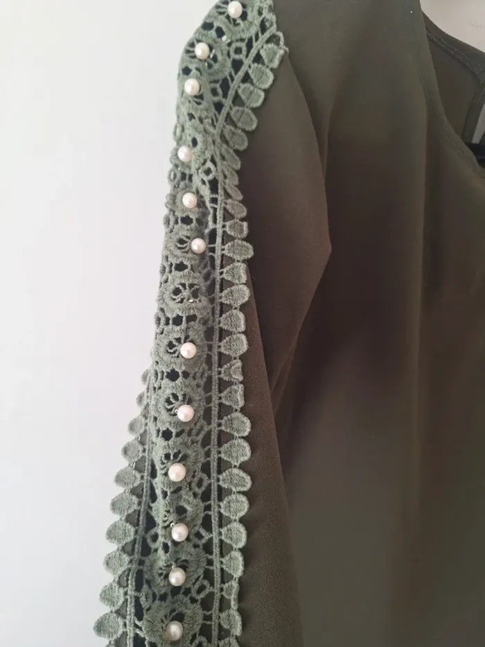 Blouse Kaki broderie et perles sur les manches En très bon état S/M
