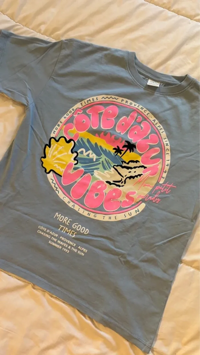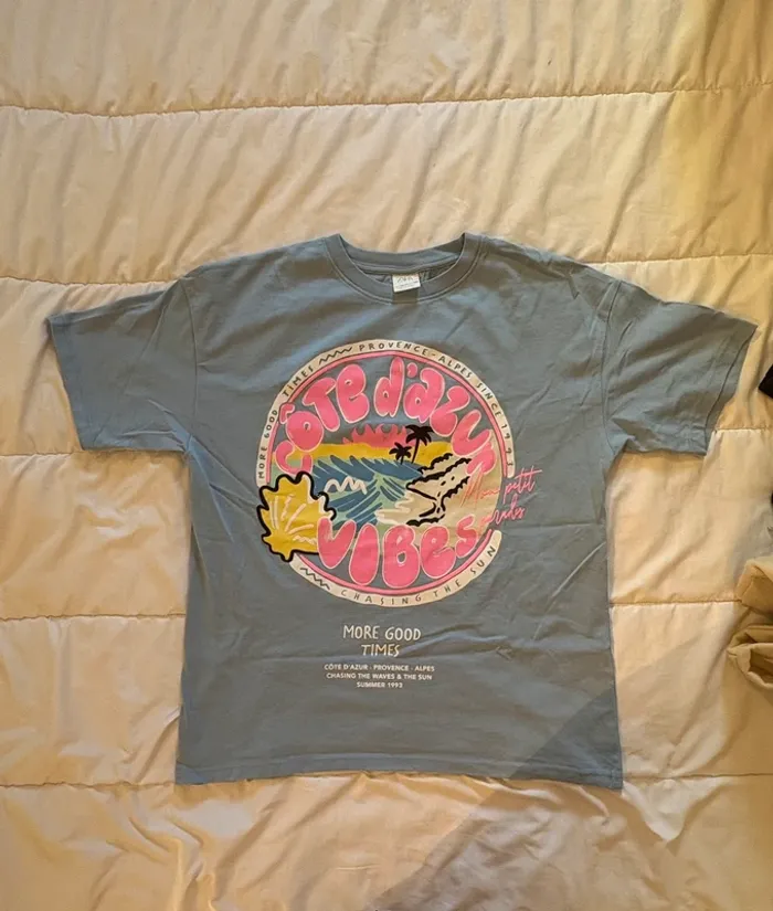 T-shirt jamais porté car j’ai cru que l’imprimé Côte d’Azur était derrière