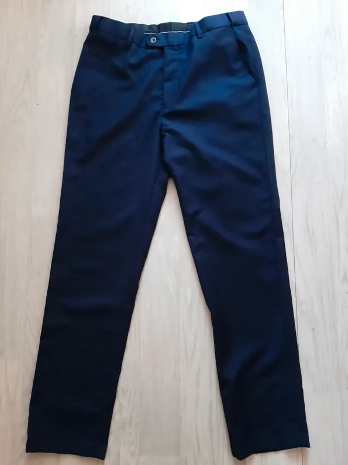 Pantalon de costume bleu marine 79% Polyester 21% Viscose Doublure 100% polyester Porté une fois