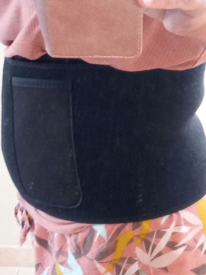 Ceinture de sudation, attache par velcro, pochette pour mettre le portable sur le devant, environ 1m de long. Jamais utilisée
