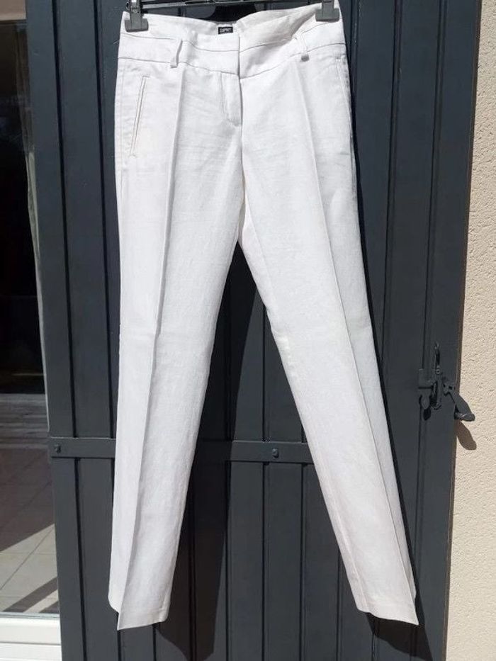 Pantalon très élégant coupe droite écru, Taille basse. Porté seulement à deux reprises, en très très bon état, aucune trace d'usure et passé seulement en pressing.