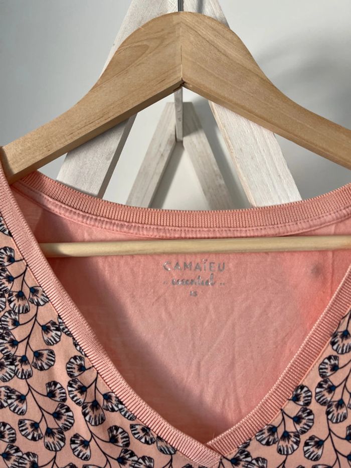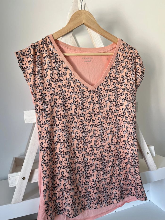TEE shirt rose matière fluide Camaïeu Étiquette XS mais correspond à un S Étiquette de lavage coupée Maison non fumeur