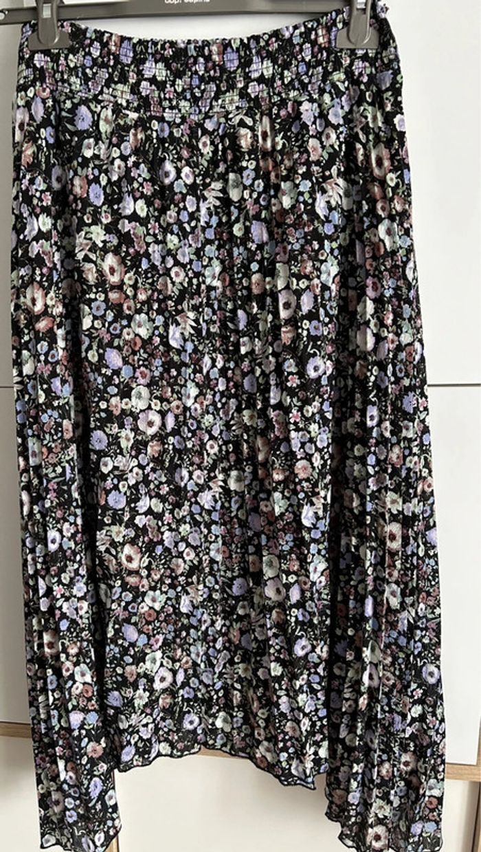 Jupe plissée asymétrique Promod taille 42. Taille élastique. Longueur devant 80cm. Longueur côté 93cm. Neuve