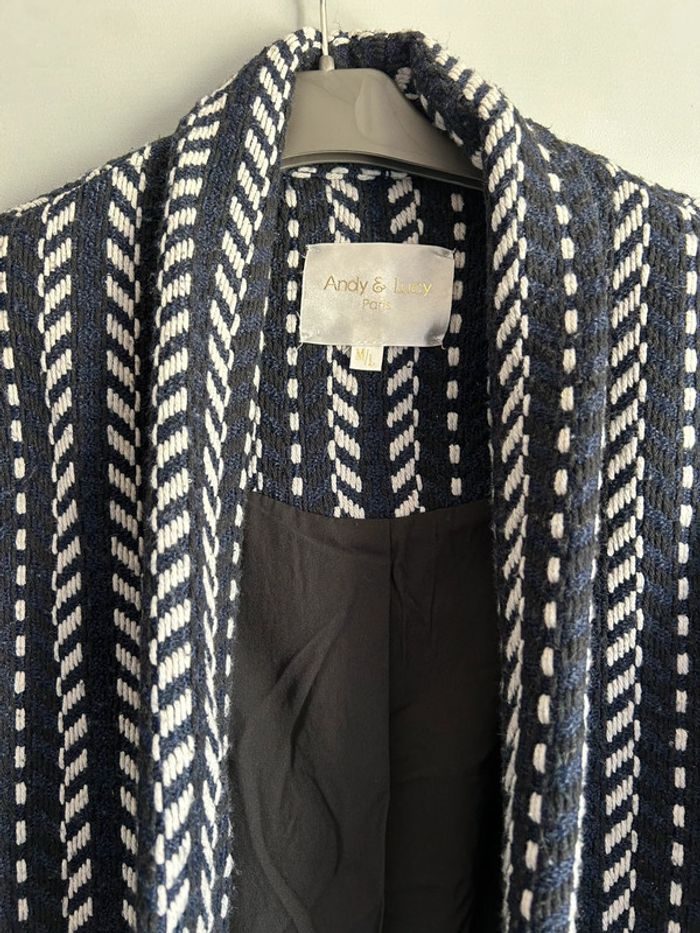 Veste Note Madame taille M/L avec poches. Couleur bleu noire et blanche. Longueur 82cm Neuve jamais portée