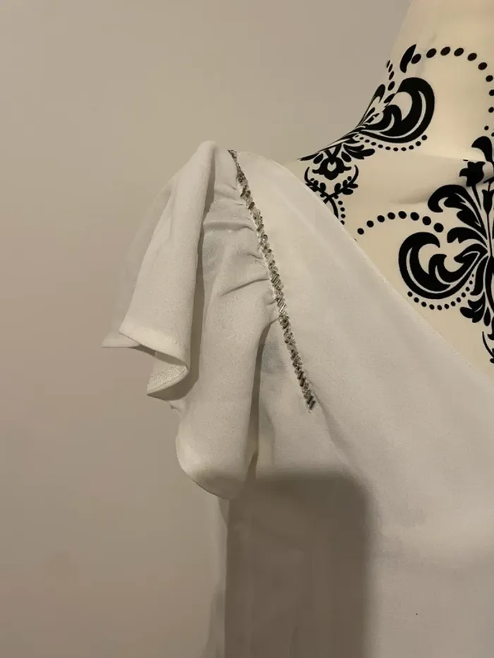 Jolie robe blanche fluide de la marque Kiabi, taille 36. Coupe droite et légère, idéale pour l’été ou une tenue chic décontractée. Manches courtes à effet volanté et joli décolleté en V à l’avant, strass aux épaules. Portée une seule fois – en excellent état. 📏 Taille : 36 🎨 Couleur : blanc 📦 Envoi rapide et soigné 💬 N’hésite pas à me contacter pour plus d’infos ou photos !