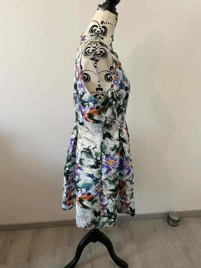 Robe chic H&M taille 44 blanc motifs violet et vert