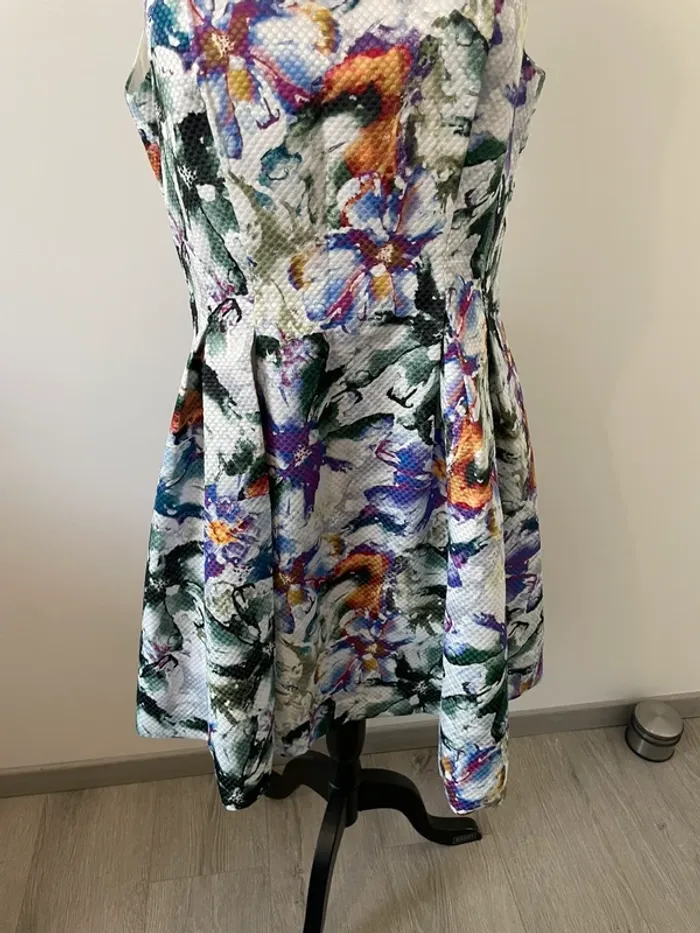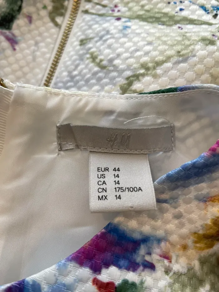 Robe chic H&M taille 44 blanc motifs violet et vert - photo numéro 1