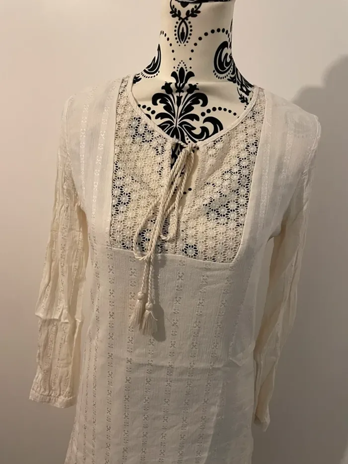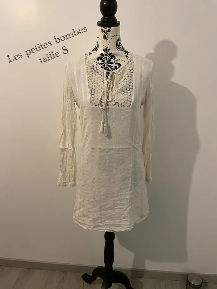 🌺 Robe manche longue dentelle col les petites bombes 📏 Taille 36 ou S 🎨 blanc cassé crème 🌸 féminin et confortable ❤️ pour un style décontracté bohème 🤩 bon état ⏰ Envoi rapide 💝 Remise si achat en lot - regardez mon dressing N'hésitez pas à me demander des photos supplémentaires Réponse rapide garantie Ajoutez-moi en favori pour ne rien rater des nouveautés !