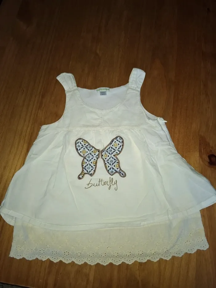 Tunique sans manches crème broderie papillon en parfait état. Très peu porté, taille 6 ans marque Vertbaudet