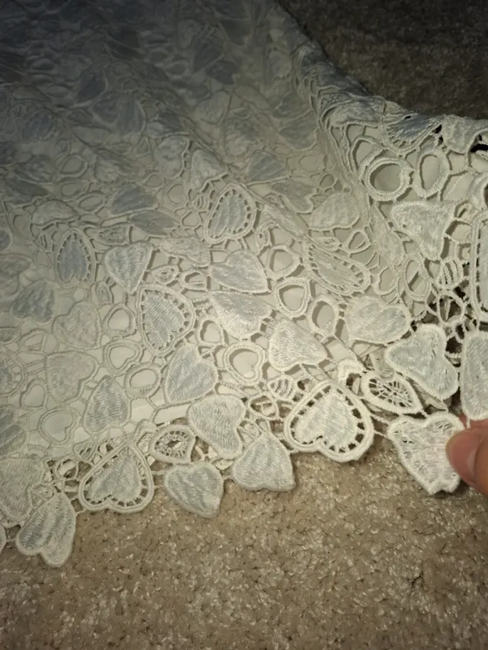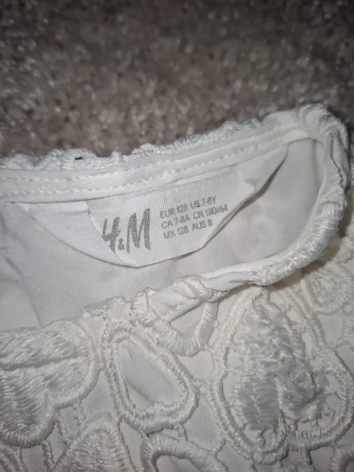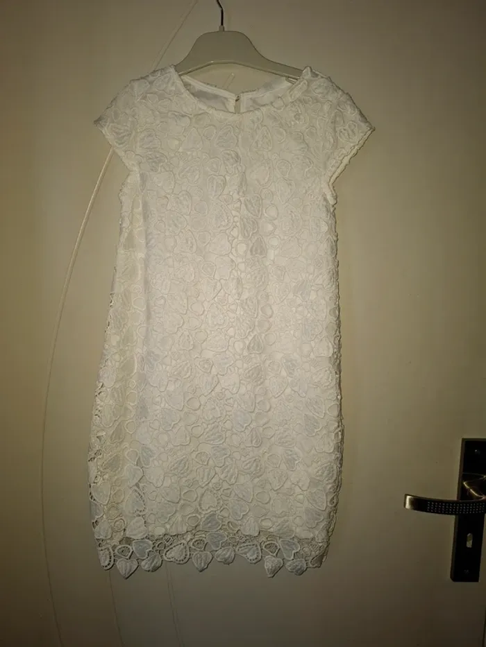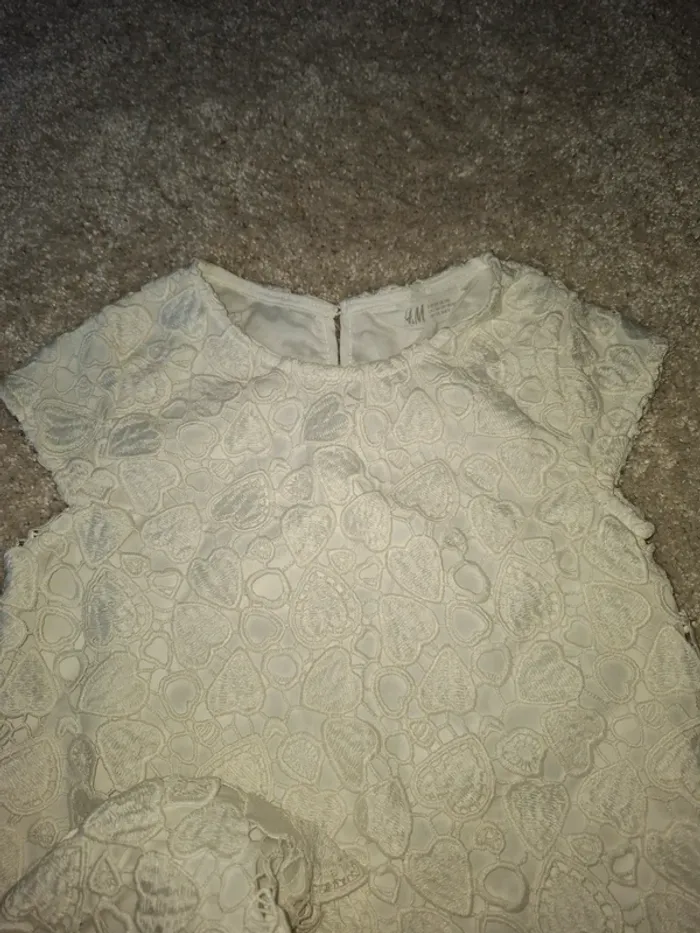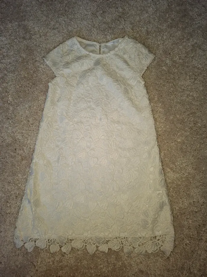 Jolie robe de cérémonie blanc crème motif crocheté format coeurs. En parfait état,porté 1 ou 2 fois Marque H&M Taille 8 ans