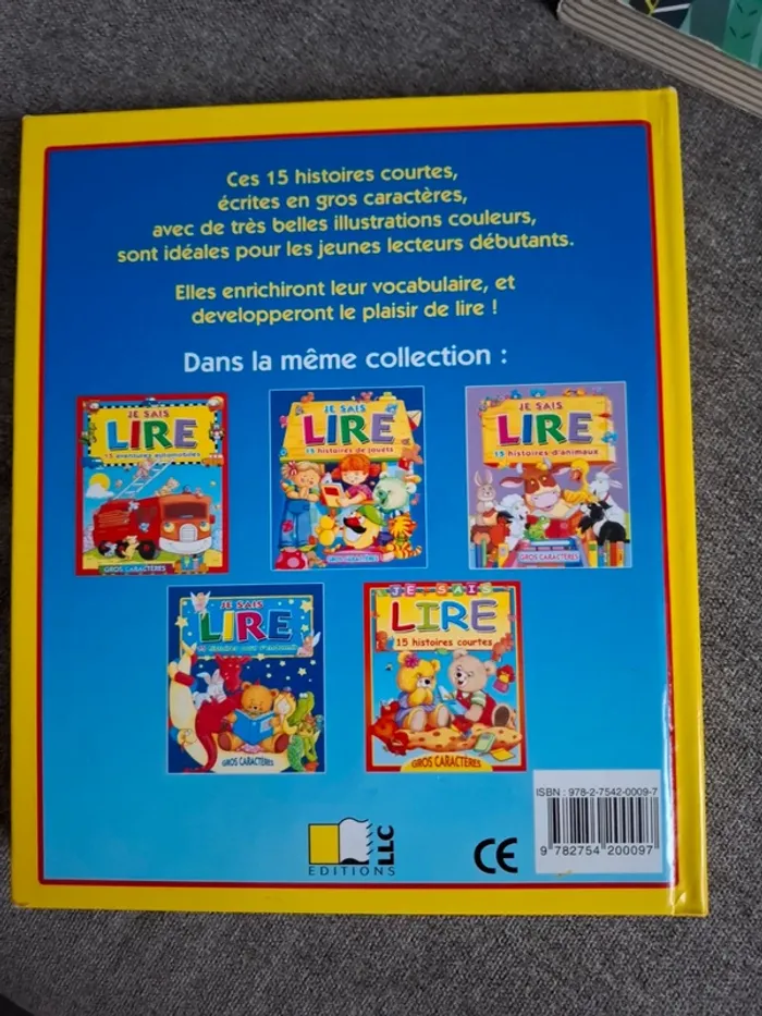 Livre avec 15 histoires pour les lecteurs débutants en parfait état. Fin de maternelle ou début de primaire.