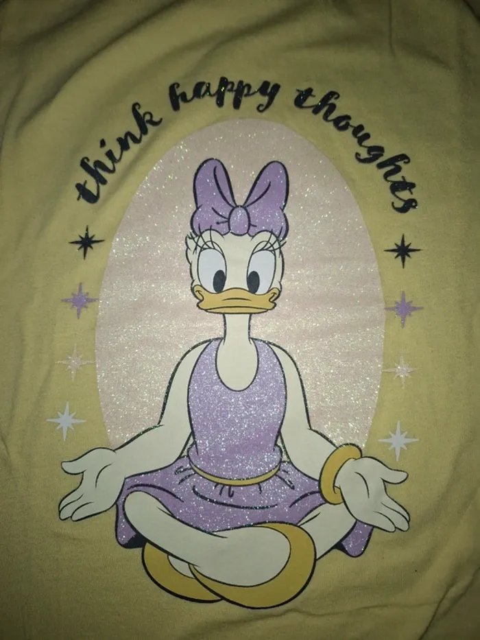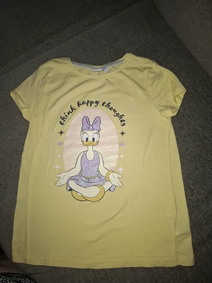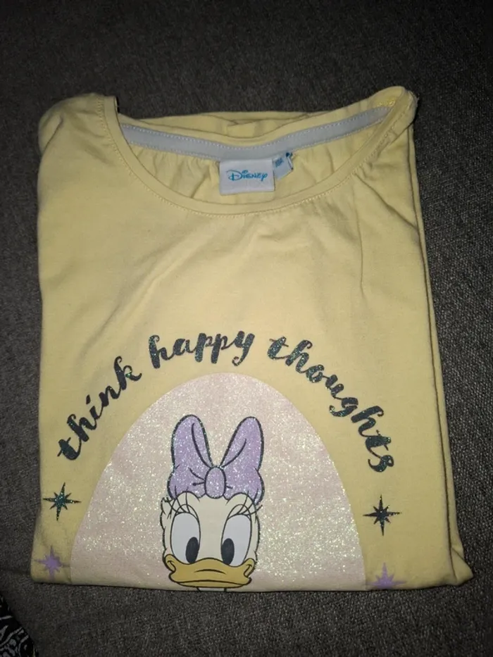 T-shirt jaune pâle impression Daisy pailletés en parfait état. Taille 10 ans marque Disney #10anssevy57