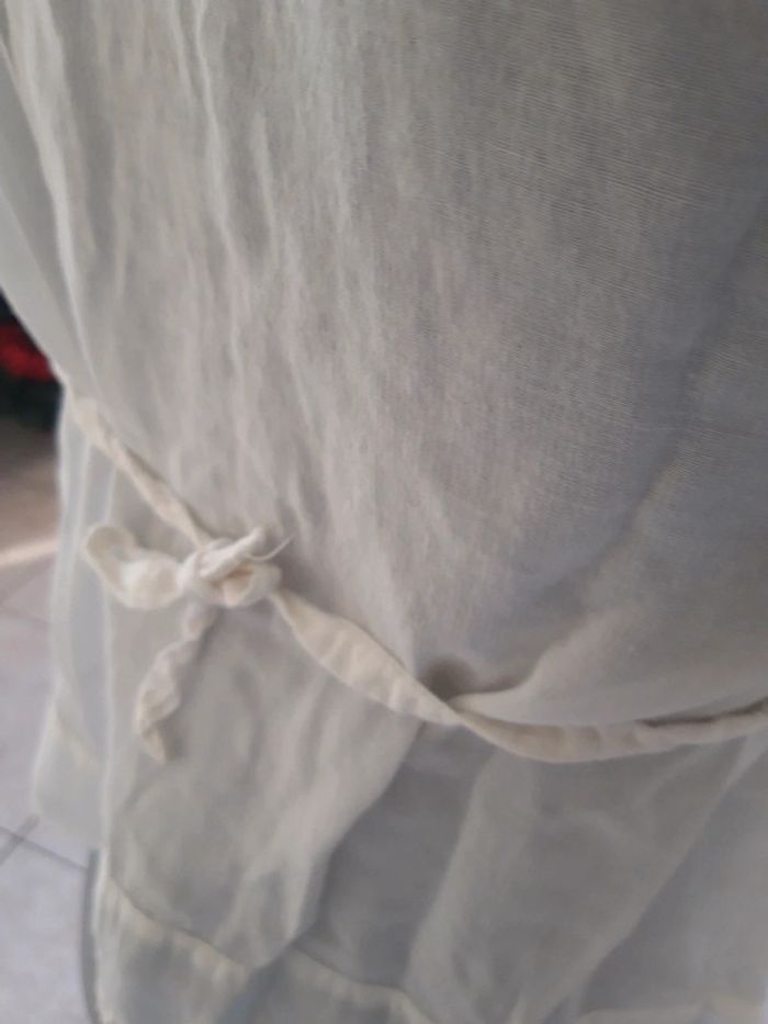 Très belle chemise brodée très bon état achetée en Thaïlande couleur blanc cassé lien de serrage au dos taille indiquée L mais plutôt S.