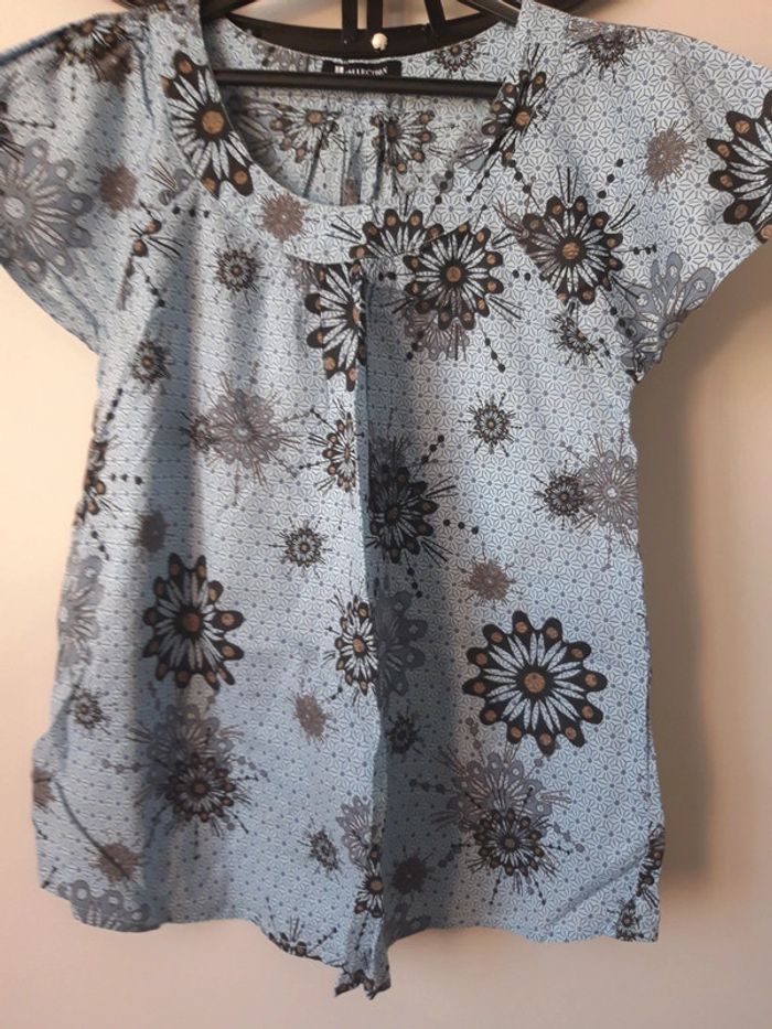 Très jolie blouse marque u collection taille 36 mais va jusqu'au 40