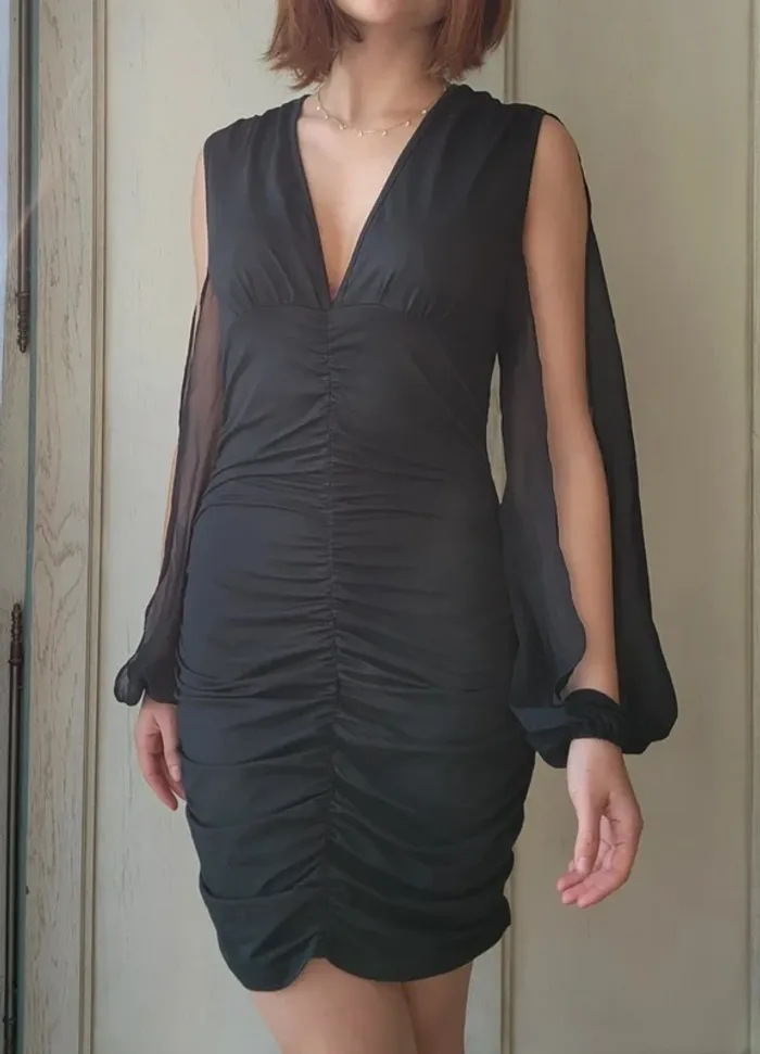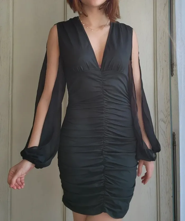 Taille S Manches ouvertes voilées #robenoire #robemoulante #robesoiree #robeété #robemanchesbouffantes #robevoile